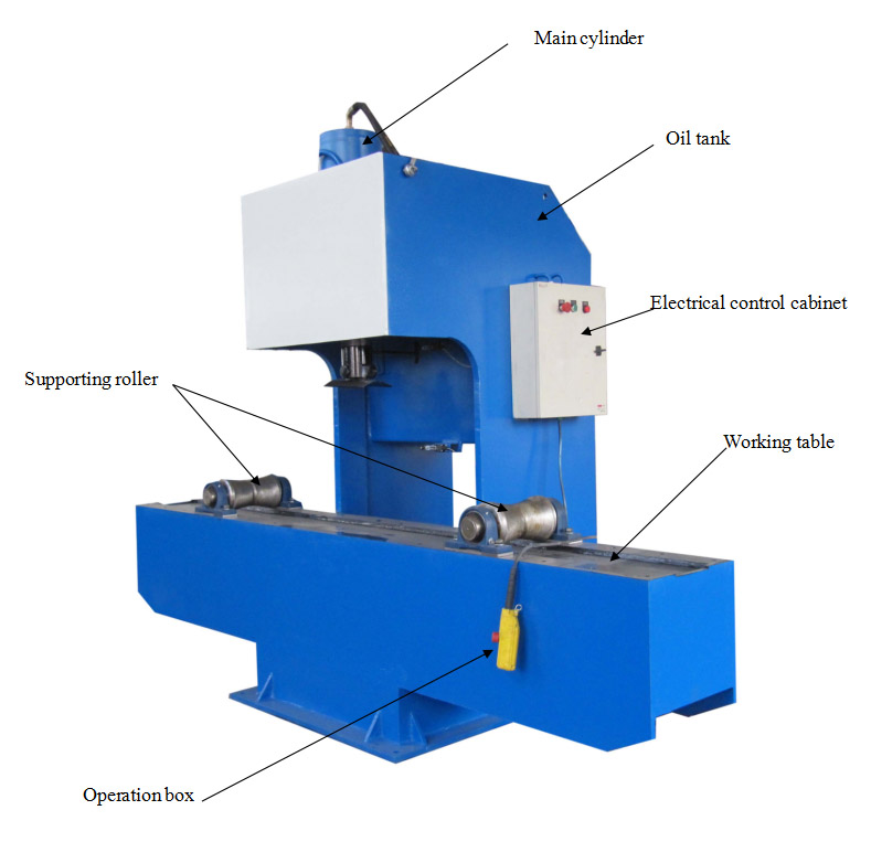 应用:本机主要用于,对路灯杆在合缝焊接和热镀锌后的弯曲变形,进行校直.