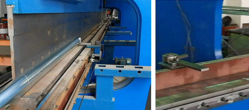 5、该机设有高精度工作台挠度补偿机构,以补偿工作时产生的挠度,确保工件每一点的折弯角度精度。