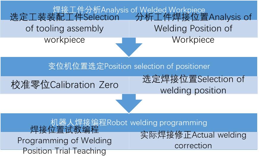 用途:本焊接系统用于路灯杆底板焊接生产。通过机器人与焊接电源的实时通讯,根据不同的焊接位置采用不同的工艺参数,取得优质的焊缝。总体布局如下图: