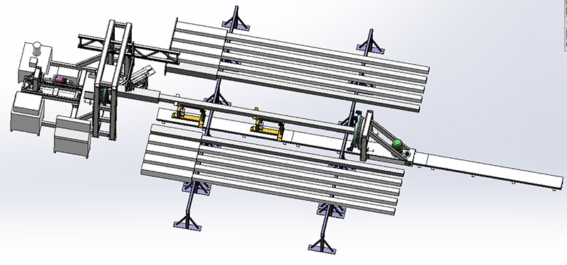 12.整个机器单向流水线的形式设计,杆子堆放在机器的左边,通过操作人员可以一根接一根向右边移动,完成焊接,焊接完成的杆子堆放到右边。杆子移动升起,无需行车,操作人员劳动强度低。