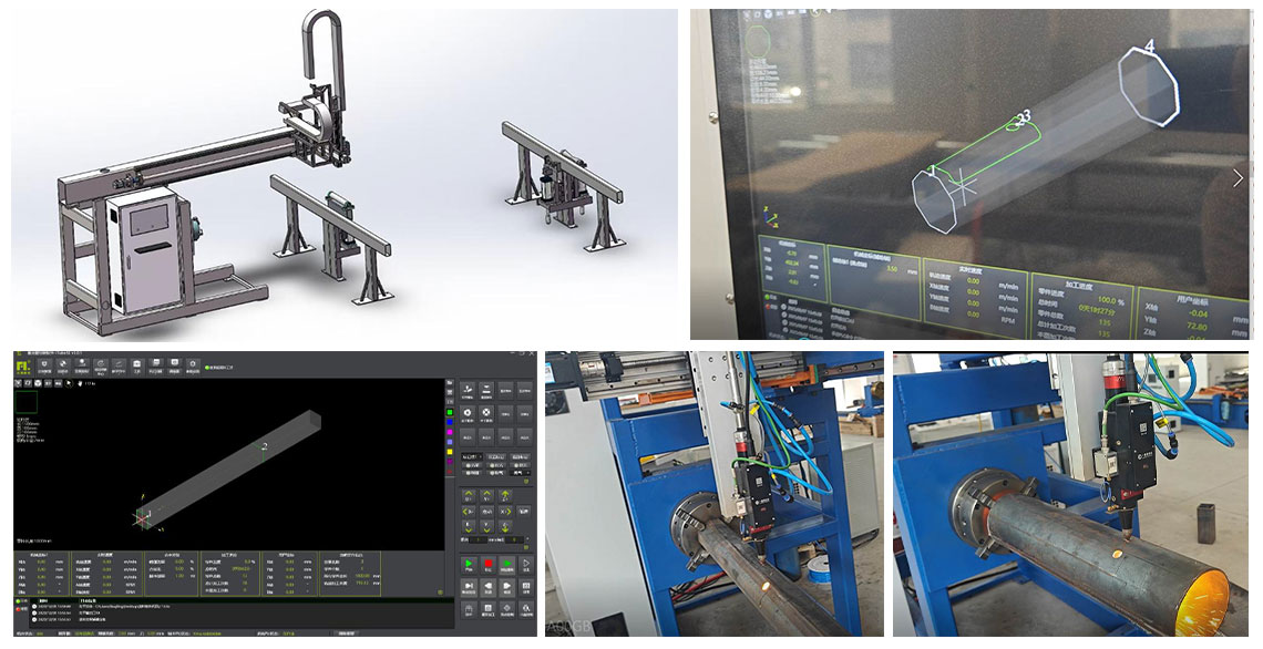 适用于圆锥形杆,圆杆,八角形灯杆电门的数控切割,切割形状可以是任何电脑CAD可以绘制的图形都可以通过随机附带的专用软件来切割。